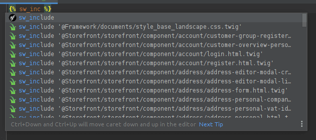 Incomplete Completion for sw_include tags